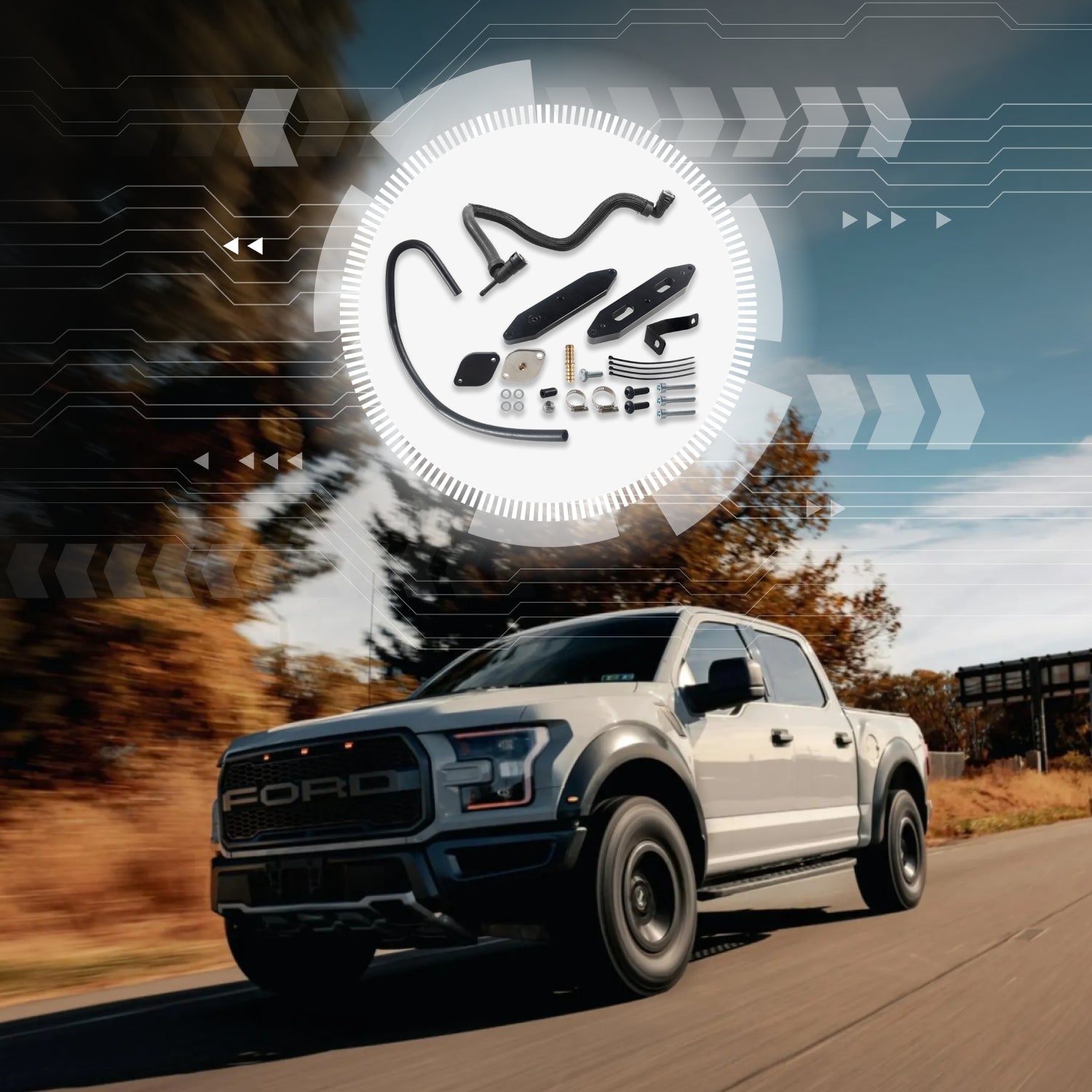 Die physische Installation des Kits entfernt das AGR-System. Um jedoch Warnleuchten zu vermeiden und sicherzustellen, dass das Fahrzeug optimal läuft, muss es in Verbindung mit einem kompatiblen Tuner oder ECM-Reflash verwendet werden.