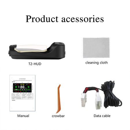 - Product Configuration:Car HUD *1,Data Cable *1,Pry Tool *1,Anti Slip Pad *1,Cleaning Cloth *1,Manual *1