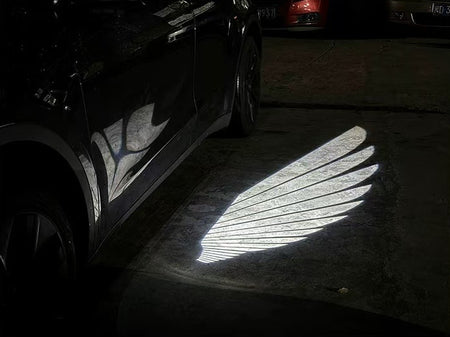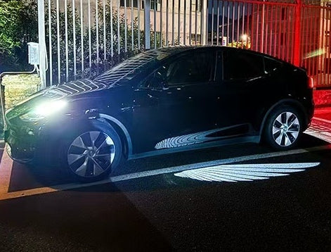 Side Rearview Mirror Welcome Lights Grundig for Tesla Model 3/Y, Angel Wing Door LED Universal Projector Light Car Accessories, Upgrade Unlocking Light on for 30 Seconds